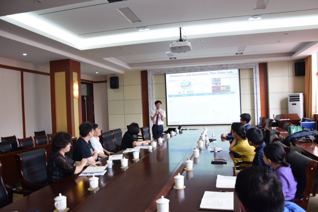 Jin-Hyeok Kim教授对公司的热情接待表示感谢,并介绍了全南国立大学的基本情况及大学所在地光州的情况,详细介绍了全南国立大学MK体育的团队情况、员工规模、科研方向及成果、学科平台、国内外合作等。Jin-Hyeok Kim教授为公司师生做学术报告《Development of compound thin film solar cells with cell efficiencies above 12% using earth-abundant Cu, Zn, and Sn metal precursors prepared by sputtering method》,并与师生进行了友好交流。