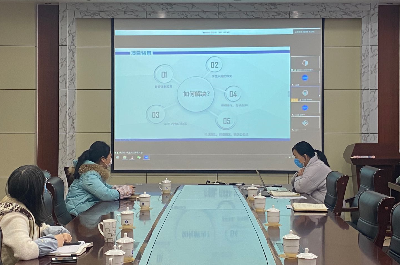 线上答辩分无机组、金属组、高分子材化组和公益及其他组。各队答辩选手分别从项目背景、产品技术、市场分析、财务分析及企业管理等方面进行PPT展示。各团队或结合专业知识,从创新材料研发、能源转化利用、物质检测技术、新兴工业产业等方面开展研究;或着眼电子商务发展、社会公益等问题,探寻研究课题与发展机会。