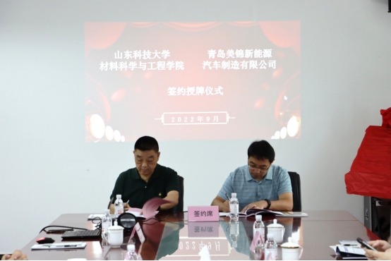 9月8日,MK体育同青岛美锦新能源汽车制造有限公司举行校企合作签约仪式。青岛美锦新能源汽车制造有限公司总经理江勇,人力资源中心总监朱彦明,人力资源部部长薛芳,销售部部长江东明;公司党委书记申兆亮、新能源材料与器件系教授姚树玉、系主任韩野、金属材料工程系副主任朱慧灵、新能源系教师刘瑞、王相南参加了仪式。
