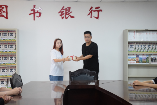 捐赠仪式上,毕业生代表向图书银行捐赠了学习资料与笔记,毕业生代表孙思雨分享了自己在图书银行学习复习的经历,并由衷地感谢公司提供的良好学习环境。图书银行负责人赵锋代表图书银行接受捐书,向关心支持图书银行建设的老师及历届毕业生表示感谢,并且承诺会坚持做好图书银行的建设工作,为同学们提供更好的服务。