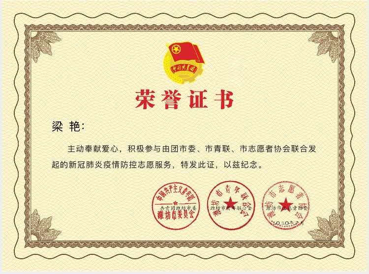 梁艳,金属16-1班员工,家住潍坊市梨园街道樱园社区。作为一名党员,积极参加社区的志愿服务队,受潍坊市团市委表彰,相关事迹被梨园街道樱园社区公众号报道。(李坤)