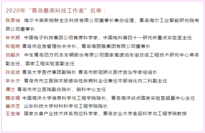 2020青岛最美科技工作者名单