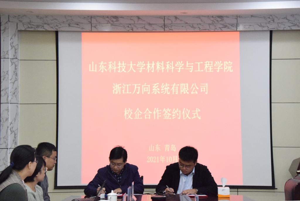 10月20日上午,MK体育与浙江万向系统有限公司在J2-434举办校企合作签约仪式。浙江万向系统有限公司常务副总经理王东、市场总监章胜凯、招聘专员王瑞鑫一行3人,公司党委书记申兆亮、党委副书记兼副经理李建楠、团委书记马韶霞、金属材料工程系系主任孙金全及部分金属材料工程系教师代表参加了签约仪式。仪式由李建楠主持。
