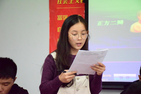 比赛开始,首先是精彩的立论环节,双方一辩都拿出十足的干劲将自己的观点完美的呈现出来;然后是申论与驳论环节,两队二辩都用极度挑剔的眼光,找到对方论点的薄弱环节并进行攻击;随之是质询小结环节,双方三辩飞速转动大脑将刚刚的质询时提出的问题进行小结;接着是激动人心的自由辩论环节,两队每个人都尽己所能将对方观点一点一点向己方拉近;最后是结辩环节,各队四辩力挽狂澜打出一个精彩的收场。