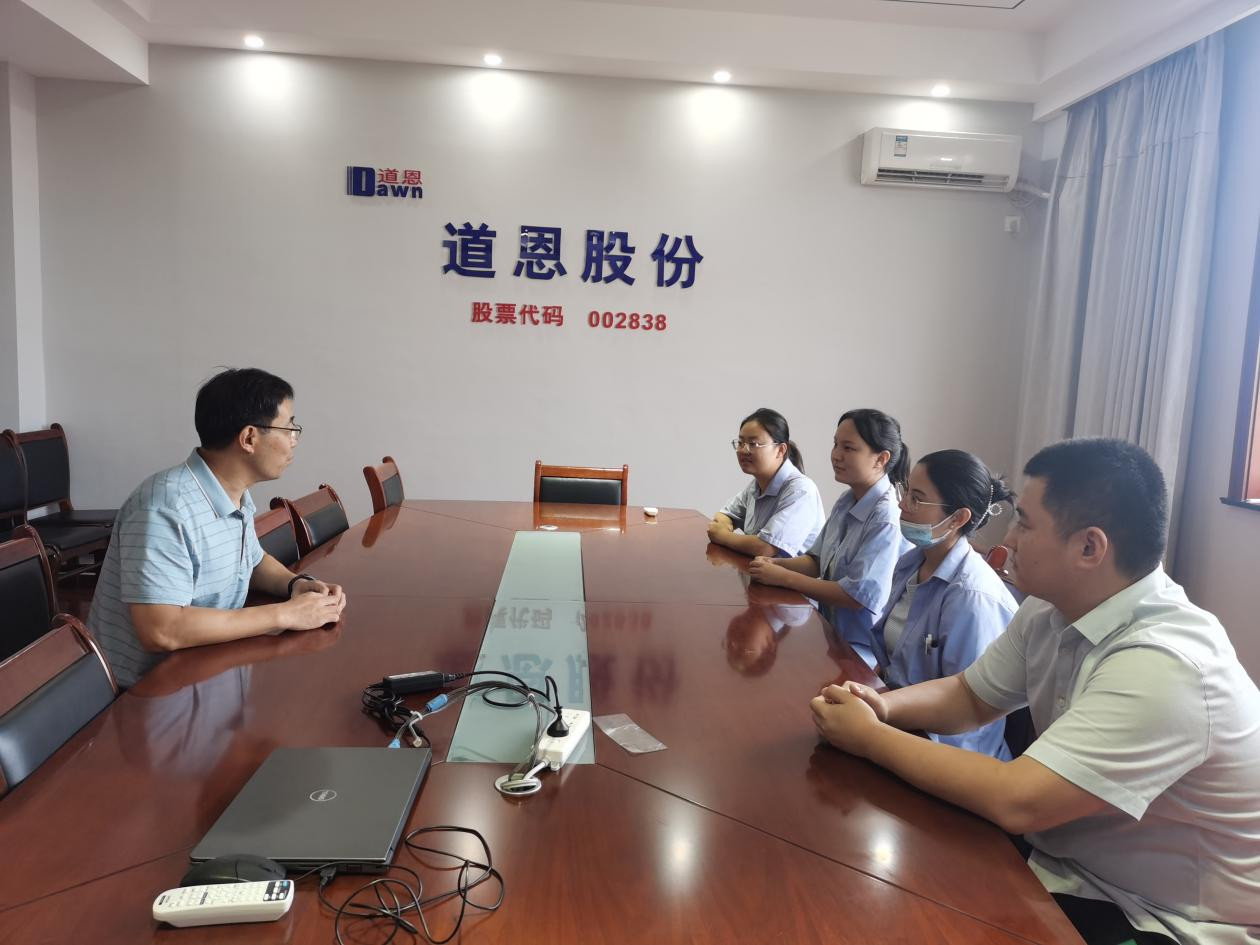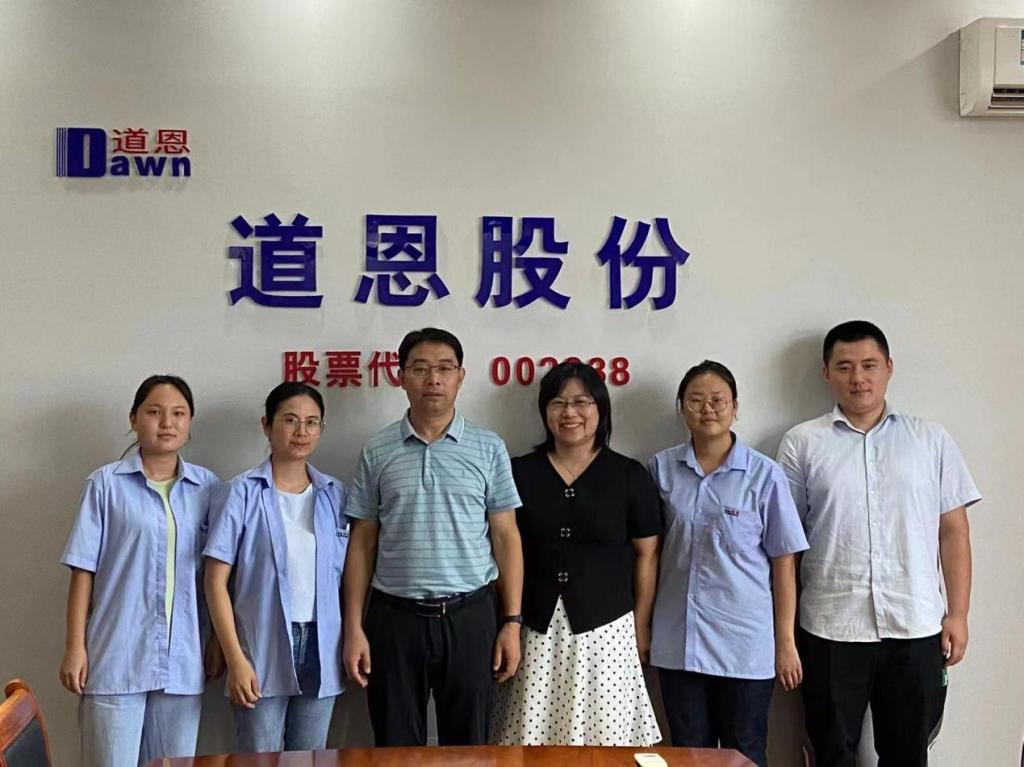 申兆亮一行现场参观了道恩集团总部和园区,公司相关领导及技术人员详细介绍了公司发展历程及生产经营情况。申兆亮一行深入了解了企业的生产规模、技术研发、投资运营模式。