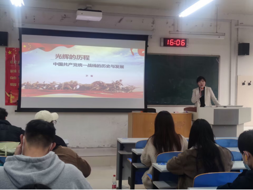 11月3日下午,艺术公司党委副书记兼副经理卫雪以《光辉的历程》为题,以时间顺序分别从建党初期和大革命时期的民主联合战线、土地革命时期的工农民主统一战线、抗日战争时期的抗日民族统一战线、解放战争时期的人民民主统一战线及新时期爱国统一战线介绍党的统一战线的发展历史。
