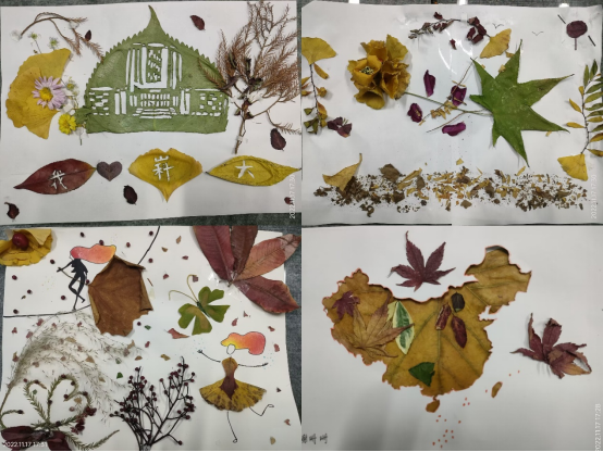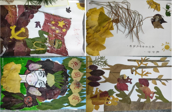 简单收集落叶后,同学们便积极投入到剪贴画的创作中。现场的同学们自觉遵守现场秩序,轻声讨论、积极创作、尽情发挥创造力。各种各样的创意作品层出不穷,无论是歌颂抗疫工作者还是怀念袁爷爷,每幅作品都给予了秋日落叶新的活力。比赛结果一等奖由段衍超、刘毅林小组以及谢珊珊、葛文婷小组获得,二等奖由刘雨荷、郭玉瑶小组等四个小组获得,三等奖由张英钊、宋淑琪小组等五个小组获得。