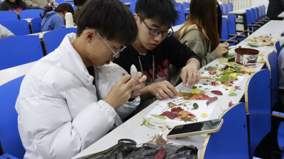 由于疫情原因,活动分为现场制作以及宿舍内制作两种形式。现场制作形式共22个参赛小组、每组两人参加,共分为集体收集落叶和小组合作完成剪贴画两个环节。在宿舍内制作的小组只需将制作完成的作品按时提交到员工会办公室即可。