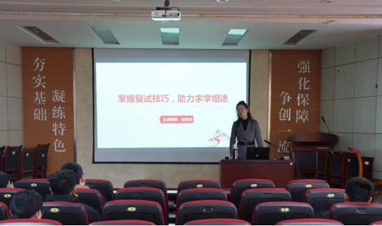 尚丹丹结合丰富的面试经验及自己的亲身经历,站在面试官的角度,对考研复试环节、自我介绍撰写、面试问题应对及就业指导等方面,对研究生复试准备工作进行了详细的指导。最后,尚丹丹与毕业生进行了深入互动交流,一一解答了毕业生提出的面试困惑,并为同学们送上祝福寄语:一是三年研究,要目标坚定;二是科研实验,要精益求精;三是多学多问,要趁早适应;四是互帮互助,要不怕重复。