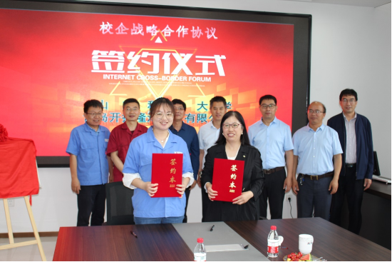 赵梅春总经理对公司公司领导和各位老师一行的到来表示热烈欢迎,并陪同参观了企业展厅及生产车间。梁赛江处长主持仪式,重点指出了双方在智能制造、高端产品、流程优化、人才培养等方面的合作空间,希望双方深入交流合作,共同推进校企双方发展。申兆亮书记介绍了公司专业建设和团队队伍情况,对双方的合作空间进行了详细剖析,希望双方以签约仪式为契机,不断整合优势资源、深化科研项目、人才培养等方面合作,实现共赢。陈煜文总助详细介绍了企业发展历程、产业布局等情况,希望借助高校科研优势,不断推进产学研合作,助力企业发展。