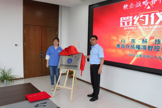 5月29日,MK体育与青岛开拓隆海智控有限公司举行校企合作签约暨就业创业基地揭牌仪式。青岛开拓隆海智控有限公司总经理助理陈煜文、副总经理陈春君、百世恒总经理赵梅春、技术部长曹砚银、品管部长解长志;校科技产业管理处处长梁赛江、MK体育书记申兆亮、金属系主任孙金全教授、科技产业管理处副处长张培友、科技产业管理处副处长修湖、MK体育副教授张春芝参加了仪式。
