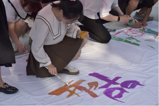 活动过程中,教师代表及毕业生代表们积极参与,用心描绘出“我们毕业啦”等文字,绘制了鸽子、公司标志性建筑等图案,进行了创意涂鸦和留言,部分同学还留下了彩色手印,现场创意无限,充满欢声笑语。绘制完成后,作品将在J2号楼东侧进行展示。