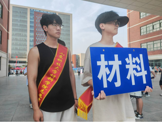 2023级萌新们进入校园后,首先到J1教学楼北侧进行身份核验,随后经过志愿者引领来到图书信息中心南侧广场进行报到并领取校园卡等相关物品。报到结束后,志愿者全程“服务”,帮助新生搬运行李,介绍校园风景,将新生“护送”至宿舍,让新生出充分感受到了集团公司的热情关怀。
