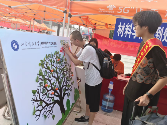 为热烈欢迎2023级新生,公司特地为新生精心准备了一系列有纪念意义的活动。“育苗成‘材’,向阳而生”活动,通过邀请新生在树叶上写下自己的期许、在果实上写下希望,并点缀在生命之树上,寓意着希望新生们能够播种希望,像大树一样成长成才,向阳而生;“满‘新’欢喜遇见你”活动通过邀请新生到“材通穹宇,料定天下”的院训景观前合影留念,留下在科大的第一帧,希望同学们能够牢记院训,在材料行业有所建树,争做国家栋梁。与以往不同的是,今年新生家长可以入校接送,公司特邀请图书馆馆长崔然带领新生家长参观了图书馆;安排了新生家长座谈会,帮助家长熟悉了解专业现状及发展情况,以形成家校合力,共同帮助员工尽快成长;最后,辅导员陪同新生家长走进了学苑餐厅,参加了后勤管理处组织的品鉴午餐活动。