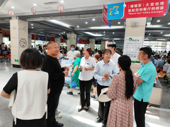 为了让家长更加深入了解员工的学习、生活环境,座谈会期间公司专门邀请了图书馆馆长崔然陪同新生家长参观了公司图书馆;座谈会后,辅导员陪同新生家长走进了学苑餐厅,参加了后勤管理处组织的“大堂经理鉴美食”活动。