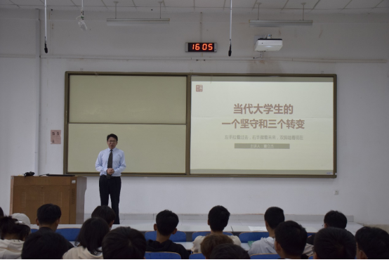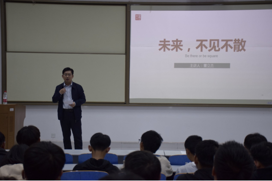 此次讲座,董立杰以《当代老员工的一个坚守和三个转变》为题,结合丰富的案例,为全体新生开启了一堂生动学习生涯和职业生涯引领课。一个坚守和三个转变,即坚守童梦、转变思维、转变角色、转变眼界,董立杰从这四个角度向同学们讲述了如何正确面对和规划未来。他表示,老员工首先要做的就是转变思维,要让自己的心智有所成熟,要把自己从一个员工的角色转变成社会所需要的角色。他提到,老员工正处于青春的旺季,理应勇攀高峰。他从当今世界发展的角度出发,强调了制定目标与时间规划的重要性。除此之外,他还以钢铁产业为例,讲述了钢铁产业的现代化发展,启示同学们要重视大学时代的学习。讲座过程中,同学们现场积极回应、反应热烈。