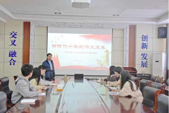 李建楠首先做了题为《新时代十年的伟大变革》专题宣讲,结合我国面临的国内外形势,讲述了党的二十大召开的背景及重大历史意义;结合详实的数据讲解了新时代十年的伟大变革以及新时代十年的伟大成就。李建楠强调党带领我国取得的伟大成就,正是马克思主义强大生命力的中国彰显,是马克思主义开放性和时代性在中国的充分彰显,体现了中国特色社会主义理论体系的丰富内涵和博大精深。党的二十大是一次高举旗帜、凝聚力量、团结奋进的大会,在党和国家发展进程中具有极其重大的历史意义,作为员工辅导员要加强理论学习,不断提高自身的政治能力,运用理论武装更好地指导实际工作。