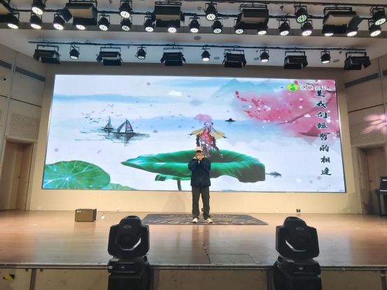 经过小组赛和淘汰赛的激烈比拼,共有七组选手进入决赛。各位选手通过朗诵、歌曲、舞蹈、相声等节目形式展现了对祖国的热爱,对梦想的期望,对历史的传承,选手们精神饱满,富有青春激情。比赛以校大艺团的歌曲《乌木》开场;修艺航同学以舞蹈串烧表现出当代老员工的青春活力;曹志翔同学为我们带来了歌曲《多情种》唱出了对爱情的叹息;吕彦璇同学带来的舞蹈《游园惊梦》表现出了女子轻盈曼妙的身姿,以及《心跳光谱》表现出了老员工的活泼俏皮;武雨萱、胡文硕带来相声《卖估衣》和《学语言》,使得观众席欢笑不断;周光熙、周春昊的一首《父亲》令人感动共情;李华峰、李明泽朗诵《我们的青春》、《我的南方和北方》,富有感情,让观众们深刻的意识到了新中国的强大与祖国建设的不易;刘博文演唱了歌曲《交换余生》。