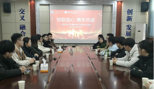 12月22日下午,青岛科技大学化公司“忆来路,闯新程”遵义会议宣讲团来校与公司“红色先锋”宣讲团进行了座谈交流,双方就红色宣讲、志愿服务、员工工作等方面进行充分的讨论沟通,相互学习借鉴方法经验,推进两院深度合作。座谈会上双方分别介绍了宣讲团在志愿服务、红色宣讲的经历,同学们纷纷表示今后要相互学习、取长补短,加强双方的合作交流,促进两院宣讲团携手进步、共同发展。