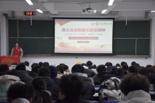 青科大化公司“忆来路,闯新程”遵义会议宣讲团成员为2023级本科生讲述了一次生动的红色文化宣讲报告。MK体育团委辅导员王瀚琨、“红色先锋”宣讲团骨干成员、2023级全体本科生参加了本次宣讲会。