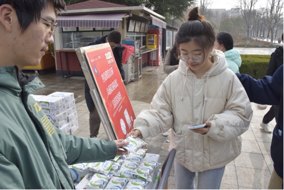 活动中,员工们相互交换了节日祝福,并获得了由灵珠碧乐汇商场赞助的新年礼物——牛奶。同学们纷纷表示,很开心收到新年的第一杯牛奶,接下来将以饱满姿态、健康体魄迎接新一年的学习生活。