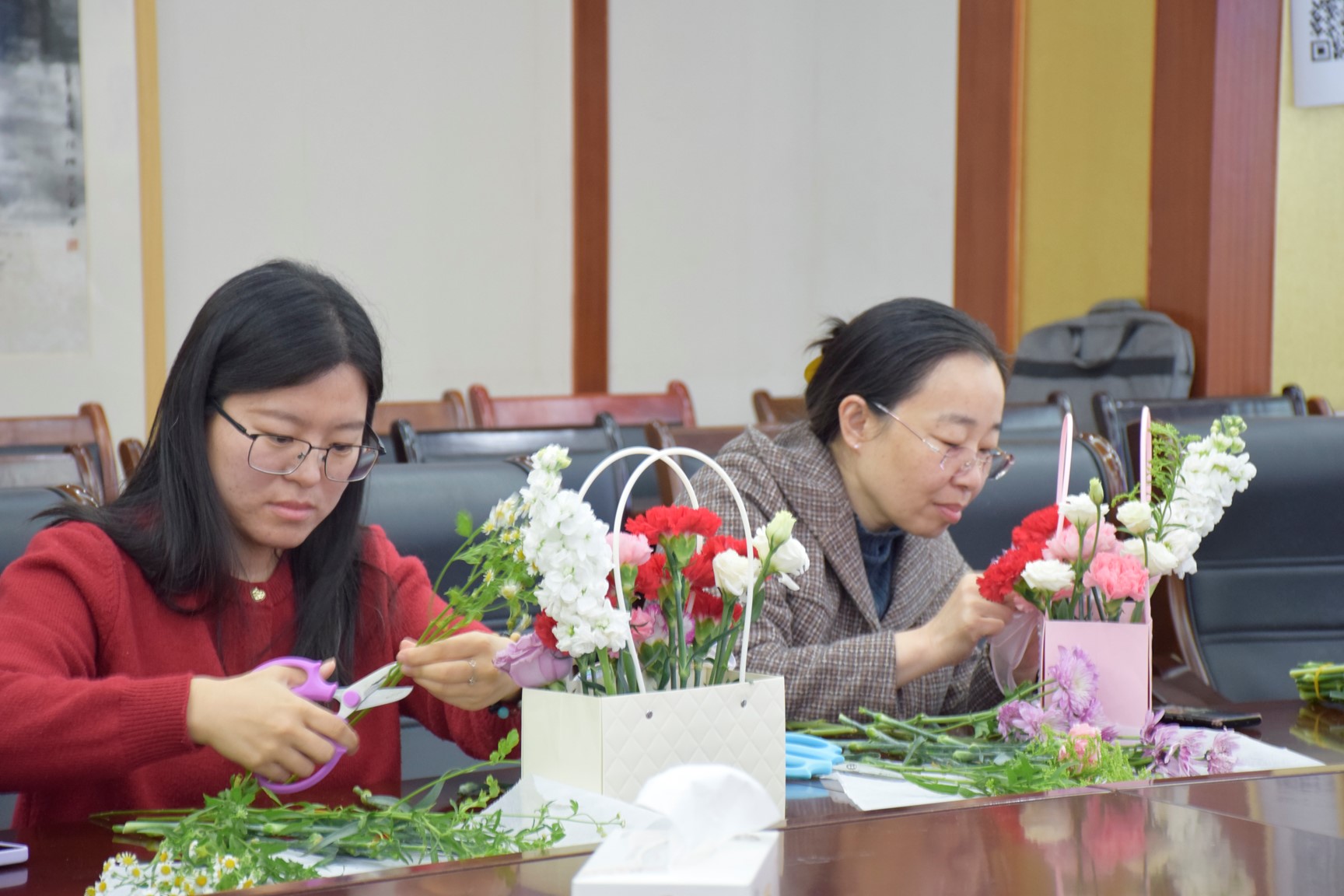 3月7日上午,在第115个“三八”国际劳动妇女节来临之际,MK体育组织全体女教师在J2-434举办“插花艺术,美美与共”主题活动。党委书记申兆亮莅临现场,向全体女教师致以最诚挚的节日祝福。