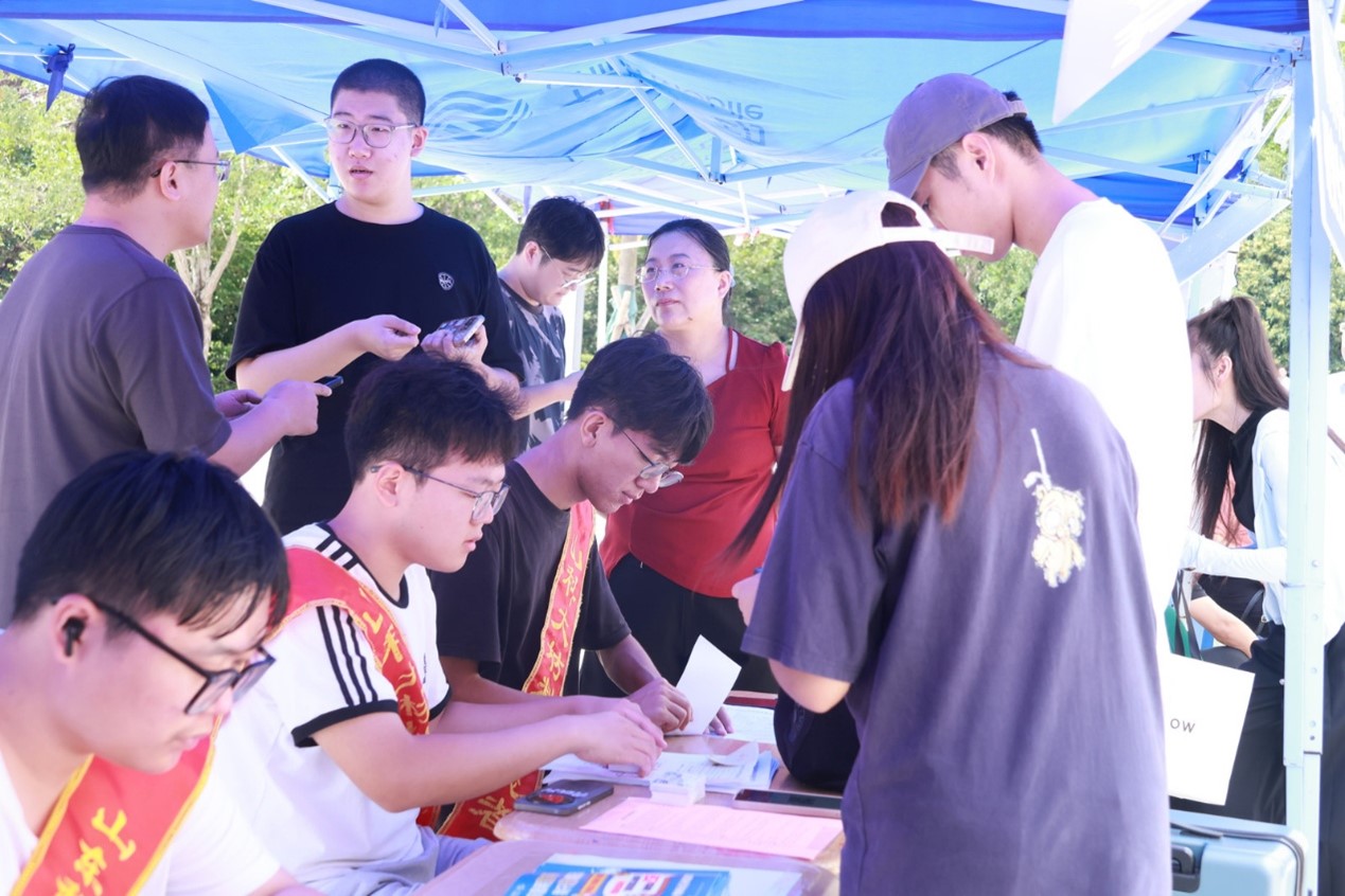 报到流程安排科学、运行顺畅。新生首先于J1教学楼北侧进行身份核验,随后在志愿者引导下至图书信息中心南侧广场办理报到手续并领取校园卡及相关材料。完成报到后,志愿者持续提供协助,不仅帮助搬运物品,还主动介绍校园布局与人文景观,直至将新生安全送达宿舍,切实解除其后顾之忧。