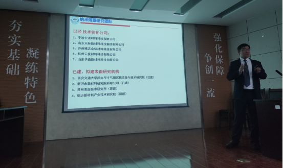 宋忠孝教授面对卡脖子问题,针对涂层的腐蚀、磨损导致产品失效的问题介绍团队开展的利用物理气相沉积技术开展涂层研究。宋忠孝教授向老师和同学们介绍了近期对模具涂层、零部件涂层、电子封装涂层、替代电镀涂层、新能源材料涂层开展的研究工作。宋忠孝教授的研究工作在矿山装备、核用、军工等领域都具有很高的应用价值。并且,宋忠孝教授还介绍了防腐与疏水涂层所开展的研究工作。最后,宋忠孝教授向大家分享了自己成果转化的经验以及带领员工参加创新创业比赛的心得。