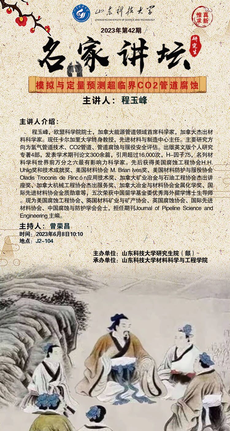 上一条:【名家讲坛】2023年第42期—欧盟科公司院士程玉峰院士作学术报告 下一条:曾荣昌教授课题组师生参加2023泰山科技论坛—海洋装备特种材料与防护技...
