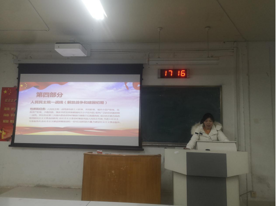 12月31日下午,培训班在J3-106教室开班。开班仪式由​公司党委组织员薄艳艳主持,艺术公司党委副书记兼副经理卫雪宣读党员发展对象培训班通知及要求,​公司党委副书记兼副经理李建楠做了开班动员。艺术公司员工工作办公室主任(团委书记)牟杰,党委组织员赵仰生,​MK体育员工工作办公室主任(团委书记)马韶霞,辅导员林振德、钟文建出席。随后,卫雪为党员发展对象讲授第一讲——“党的统一战线”,就建党初期和大革命时期、土地革命时期、抗日战争时期、解放战争时期、新时期五个方面进行分析,并详细讲述了不同时期统一战线的性质、任务、时代特点及其重大作用。最后,她鼓励同学们做一个有理想、有本领、有担当的青年,要严格要求自己,互相监督,不断进步。