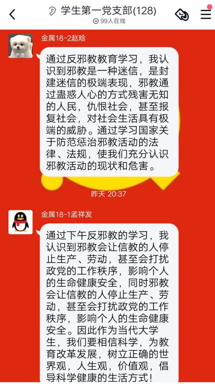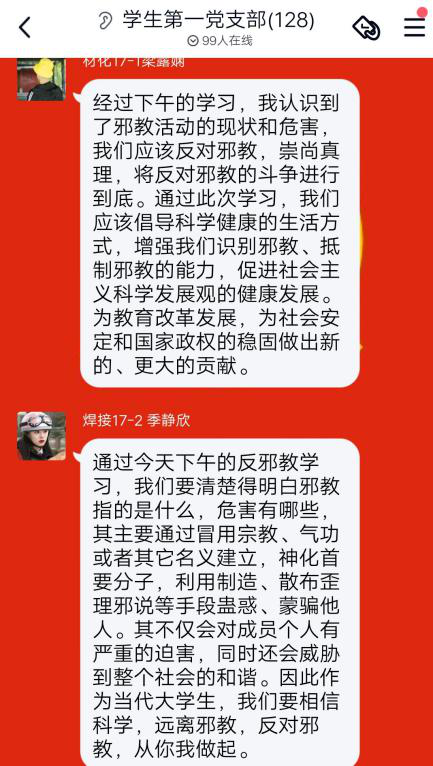通过此次教育学习,同志们感悟颇深。赵晗、孟祥发等同志表示:“邪教是一种迷信,是封建迷信的极端表现,邪教通过蛊惑人心的方式残害无知的人民,仇恨社会,甚至报复社会,对社会生活具有极端的威胁。”褚文龙、侯若松等认为:“邪教总是诋毁科学,歪曲科学,或者以人类还有未认识的自然现象和未解决的疑难问题为借口,否定科学,制造伪科学。”张韵秋、姜雪等建议:“作为老员工党员,我们应该坚定党的领导,树立正确的思想,相信科学,带头抵制邪教风气的传播,通过自身的实际行动带动身边的家人、朋友抵制邪教行为。”