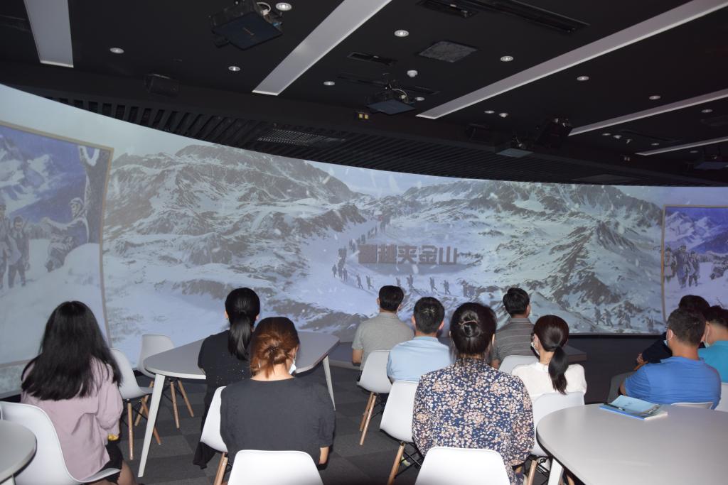 在参观过程中,同志们认真聆听讲解,不断驻足观看,体验耳目一新的党史学习教育。在“5G高新视频党史教育展厅”中通过“开天辟地”“改天换地”“翻天覆地”“惊天动地”四个篇章的卫星遥感、幻影场景等技术重温了党的百年光辉历程;在沉浸式多功能厅利用5G+16K精细超高清画面和沉浸双曲碗幕的裸眼3D视效,党员同志们穿越时间和空间,身临其境感悟了革命精神,体验了更加走心入心的党史学习方式。参观结束后,公司党员领导干部重温了入党誓词。