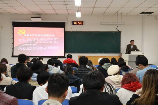 4月27日,校纪委综合处处长白斌讲授“党的纪律”,从什么是党的纪律、党的纪律的特点、必要性及如何做四个方面展开讲解。他着重讲解了党的纪律的四个特点,以及六大纪律中的政治纪律,它要求各级党组织和党员必须在政治方向、政治立场、政治观念上同党中央保持高度一致。他鼓励每位同学增强对党的纪律的认识,并在日常生活中带头遵守、执行党的纪律,起到先锋模范作用。