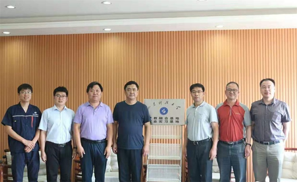 在金刚新材料股份有限公司,申兆亮一行与邹平市科技局党组成员、副局长李勇、邹平市委组织部人才办副主任林小全,金刚新材料股份有限公司董事长赵友谊等就深化校地、校企合作进行深入交流。申兆亮与赵友谊签署了共建MK体育官网MK体育产教融合与实习就业基地协议书,并揭牌。在公司期间,申兆亮一行看望了正在公司实习的员工,勉励员工们要注意安全、认真实习,提高自身本领。