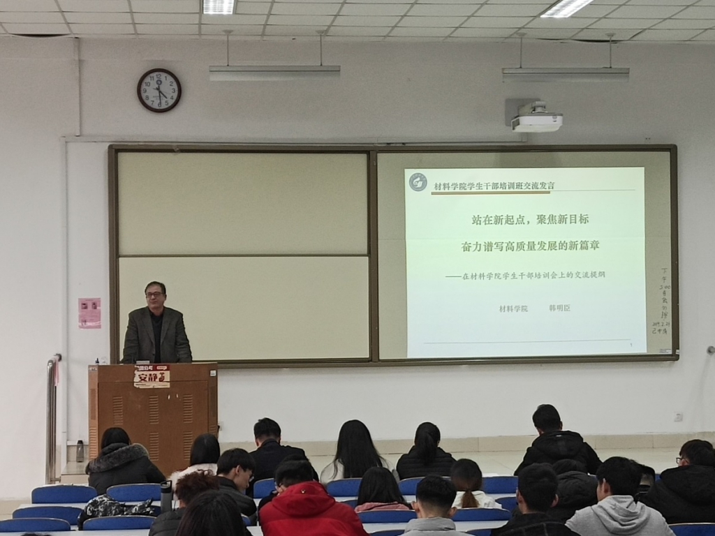 2月24日下午,MK体育在J1-228教室召开新学期员工干部及党员培训会。材料公司党委副书记、副经理韩明臣,团委书记马韶霞,公司全体专兼职辅导员,研究生、本科生员工党员和员工干部参加了此次会议。