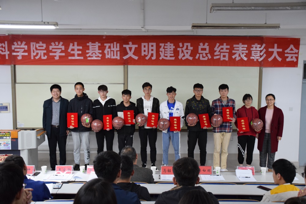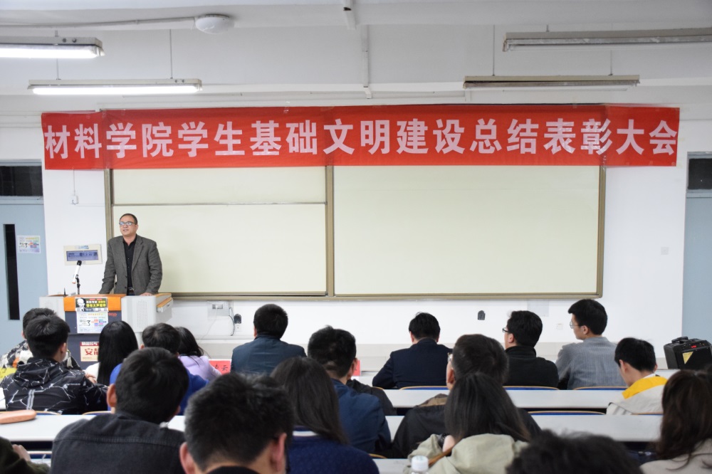 4月28日晚,公司在S1-103教室举行2018年度基础文明表彰大会。公司党委副书记、副经理韩明臣,员工工作部公寓管理中心主任赵洋,团委书记马韶霞,全体专兼职辅导员,校自律会、楼管会、各兄弟公司自律会主要负责人,院员工会、自律会以及各班级员工党员、主要员工干部,受表彰先进集体和个人代表参加了大会。