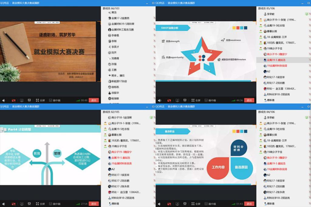 5月7日下午,MK体育员工会就业创业部,以QQ群屏幕分享的方式举办了“逐鹿职场,筑梦芳华”就业模拟大赛决赛。公司员工代表王子涵、杜玉晓、王昌胜担任此次比赛评委。
