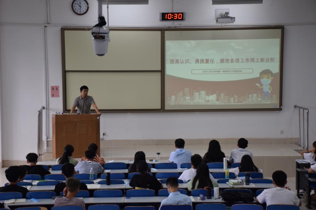 8月30日上午,​MK体育在J1-228召开2020-2021学年第一学期员工干部大会,党委副书记兼副经理李建楠,团委书记马韶霞,团委老师薄艳艳、李坤、林振德、钟文建、于晓彤及全体员工干部参加了会议。会议由马韶霞主持。