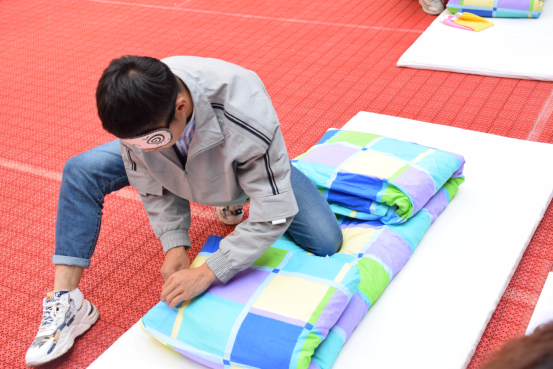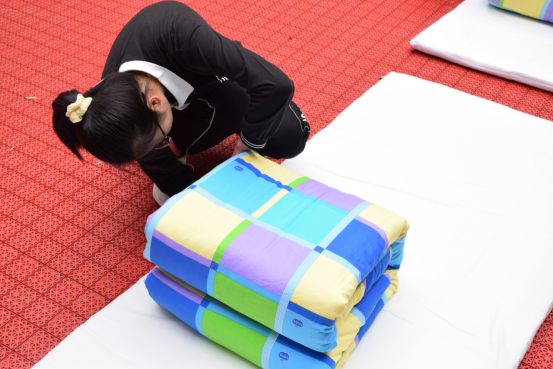 叠被大赛共分为个人普通叠被,双人组合叠被、道具叠被以及趣味游戏四轮,总共十一个代表队参加。同学们人人奋勇争先,个个摩拳擦掌,赛前口号响彻云霄,壮士如虎气如虹;赛时动作行云流水,沉静若水动若风。经过激烈角逐后评委评定,材化2020-1班获一等奖,新能源2020-2班、金属2020-1获二等奖,高分子2020-1班、材化2020-2班、金属2020-2班获三等奖,新能源2020-1班、高分子2020-3班、高分子2020-2班、金属2020-4班获优秀奖,高分子2020-1班获最佳班级文明风貌奖。