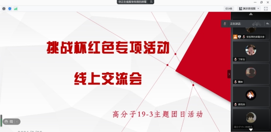 高分子材料与工程专业2019-3班采取了线上讨论会,通过线上班级群让同学们参与到活动中来。在此次团日活动前期,他们首先为同学们解读了“挑战杯”红色专项活动的文件要求,鼓励同学们积极参加此次的挑战杯活动。随后,同学们将假期中进行的乡村振兴、脱贫攻坚、疫情防控等具体实践活动进行分享,提高了同学们,在建党一百周年之际,对党和国家发展变化的认识,取得了较好的成果。