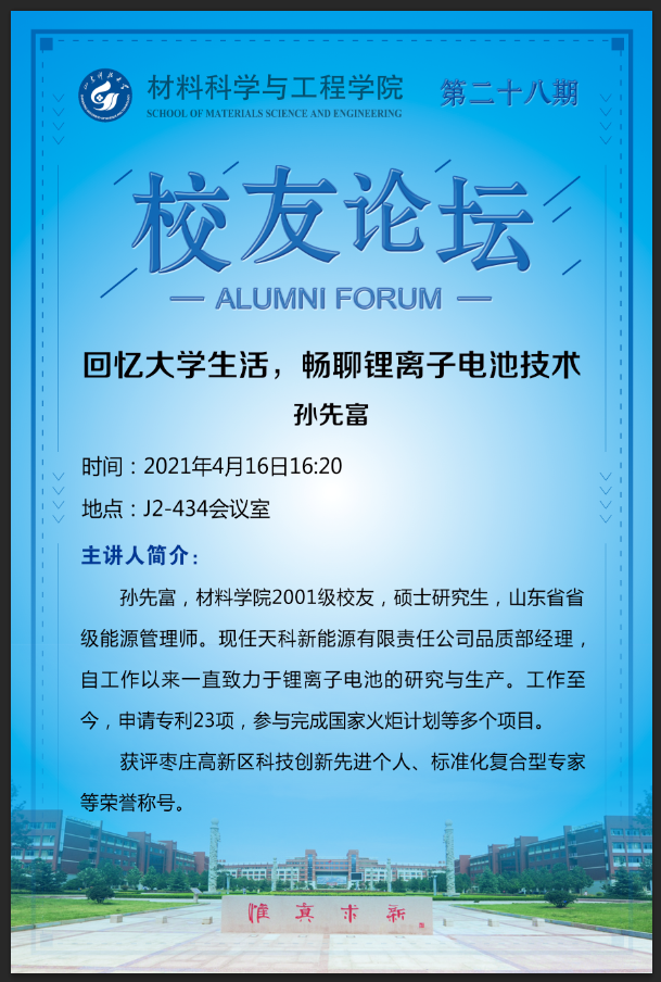 上一条:公司与天科新能源有限责任公司举行产教融合基地和就业实习基地签约仪式 下一条:金属材料工程2018级各班级举办考研系列讲座