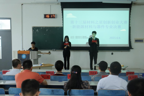 6月6日下午,MK体育于J5-302举办第十三届材料之星创新创业大赛新能源材料与器件专业决赛。公司党委副书记兼副经理李建楠,新能源材料与器件系教师姚玉树、韩野、丁建旭、王新震、孙海清、刘瑞、张广心,团委老师薄艳艳参加了比赛并担任评委。