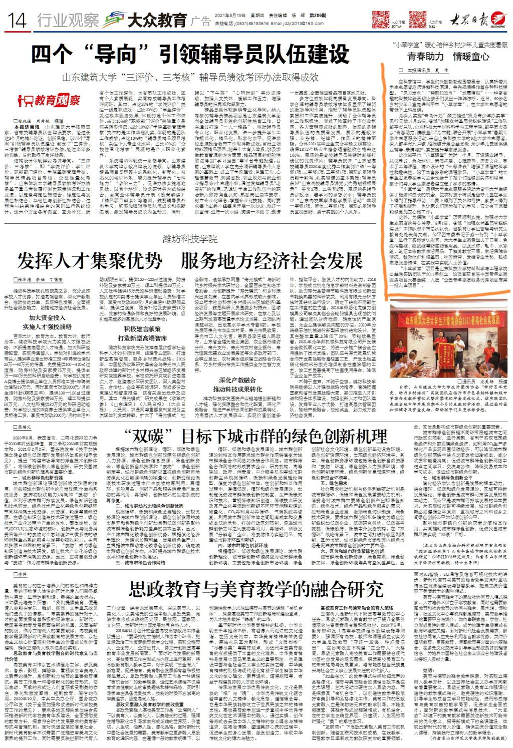 为助力乡村振兴,深入实施关爱农村留守儿童志愿服务项目和“情暖童心”关爱保护农村留守儿童工程,聚力推进“我为青少年办实事”见行见效,2021年暑期MK体育官网小草学堂89名志愿者赴邹平市、东营市、日照市三地开展“小草学堂”暑期老员工志愿服务活动,深入开展公益支教,与700余名少年儿童一起共度欢乐暑假。期间,“小草学堂”实践团志愿服务活动被多家社会媒体宣传报道。