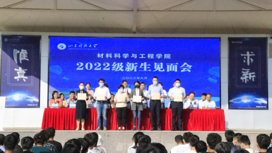 员工代表青岛理工大学崔宁教授发言,他就新生入学后如何规划老员工活提出了宝贵的建议。他希望2022级新生要树立勤奋踏实的学习态度,严格要求自己,打牢学习基础;要有真成谦和的做人态度,心胸宽广、主动关怀他人;要积极参与院校班级服务工作,培养业余爱好和高雅的兴趣,不断锻炼自身能力。2022级新生代表张路明同学发言,他表达了对材料专业的喜爱,以及立志为国家新材料研发做出贡献的决心。